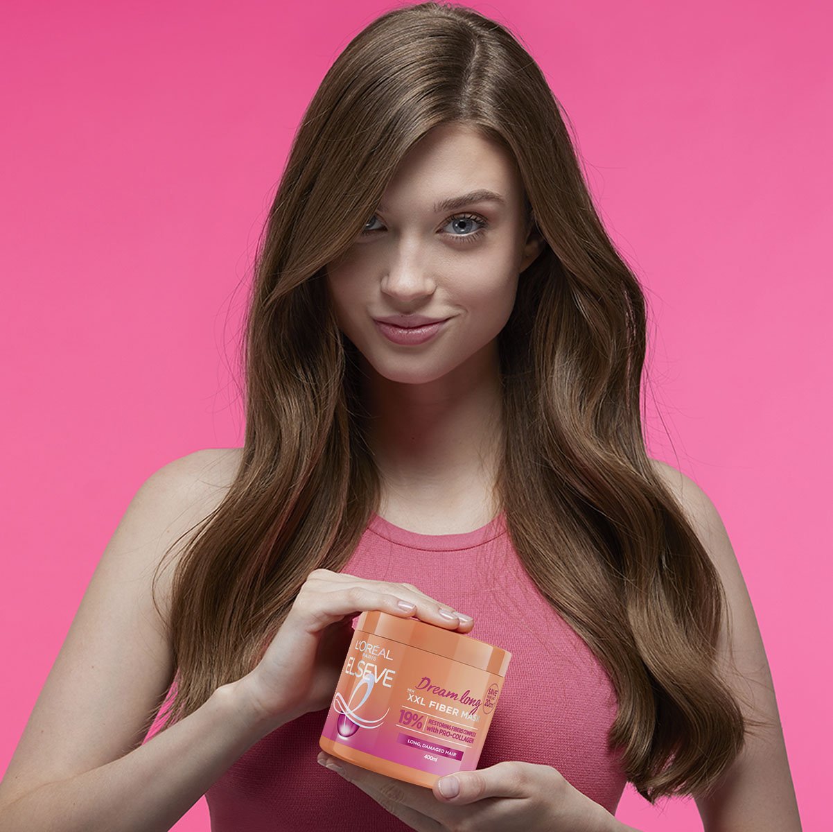 Sačuvajte posljednjih 20cm* vaše kose uz pomoć L'Oréal Paris Elseve Dream Long XXL Fiber maske za dugu i oštećenu kosu! Ojačava slabe vlasi kose i čini je sjajnom i trenutno raspetljanom. Postignite XXL efekt punije dužine i zdravijeg izgleda vaše kose. L'Oréal Paris Elseve Dream Long XXL Fiber maska posjeduje tehnologiju obnavljajućih vlakana s pro-kolagenom koja se aktivira laganim pljeskanjem ruku. Vlakna obavijaju vlasi kose i zaglađuju kutikulu. Proizvodi iz Elseve Dream Long linije osiguravaju njegu bez otežavanja za bujniju i sjajnu dugu kosu.
