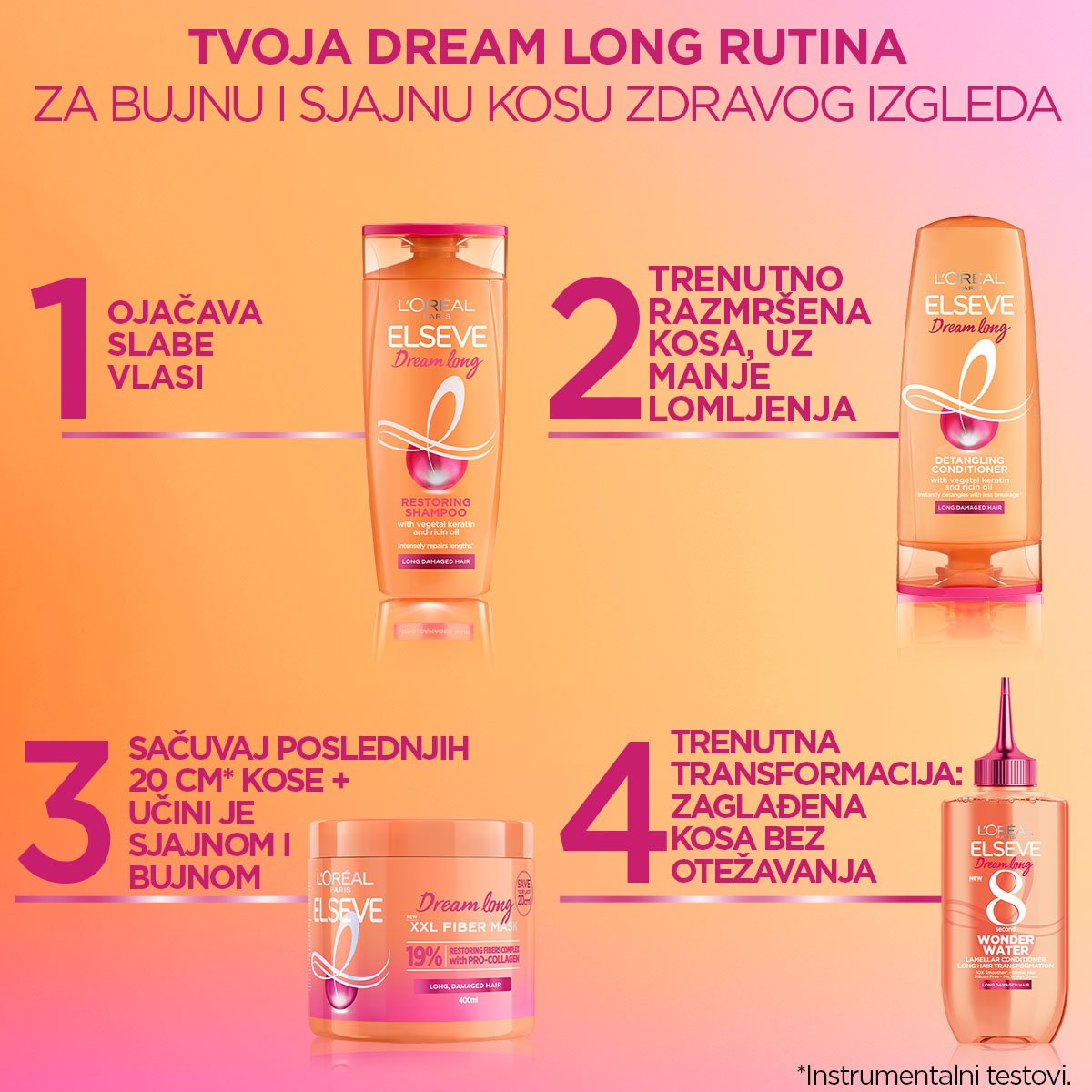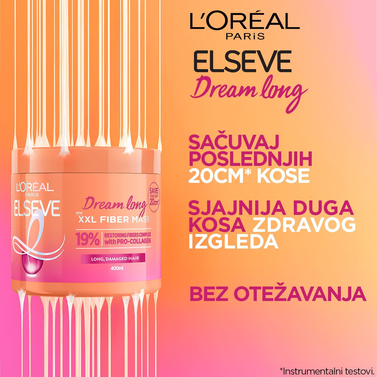 Elseve Dream Long XXL Fiber maska za dugu i oštećenu kosu. Sačuvajte posljednjih 20 cm* kose + učinite je sjajnom I bujnom. *Instrumentalni testovi